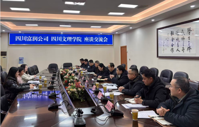 为深化校办企业改革、推动股权划转落地、健全国资监管体系,1月20日下午,四川文理学院与四川富润企业重组投资有限责任公司(以下简称“四川富润”)、四川富润教科投资集团有限公司(以下简称“富润教科”)的座谈交流会隆重召开。学校党委书记黄涛、校长侯忠明、副校长陈光平,四川富润副总经理倪莎,富润教科副总经理李灿,共商校办企业高质量发展新路径。会议由副校长程碧英主持。